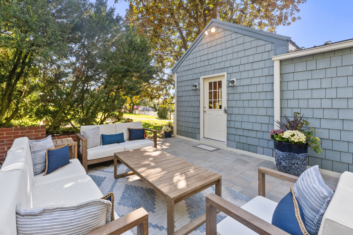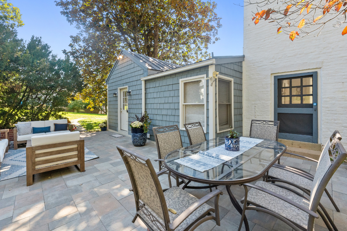 Inside, the home exudes warmth and character with gleaming antique hardwood floors throughout. Two inviting sitting rooms provide cozy spaces for relaxation or entertaining. The main level features a comfortable bedroom and updated full bath for easy one-level living, while upstairs awaits a spacious primary bedroom with its own updated bath. The bright, updated kitchen boasts contemporary appliances and opens seamlessly to a picturesque stone terrace overlooking lush, mature gardens--ideal for morning coffee or al fresco evenings. A large, interior-access storage basement offers ample room for gear or future expansion. Out back, a versatile separate one-room cottage (perfect as a home office, artist's studio, guest suite, or teen retreat) adds incredible flexibility.