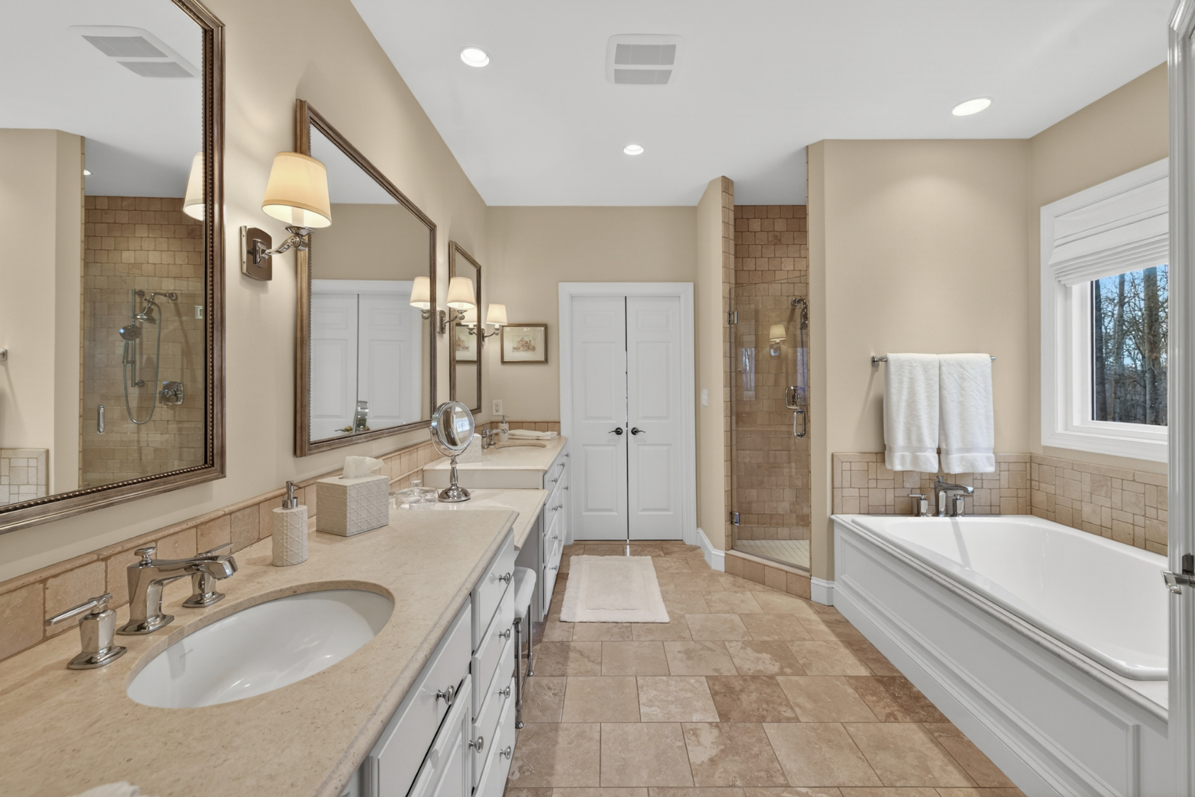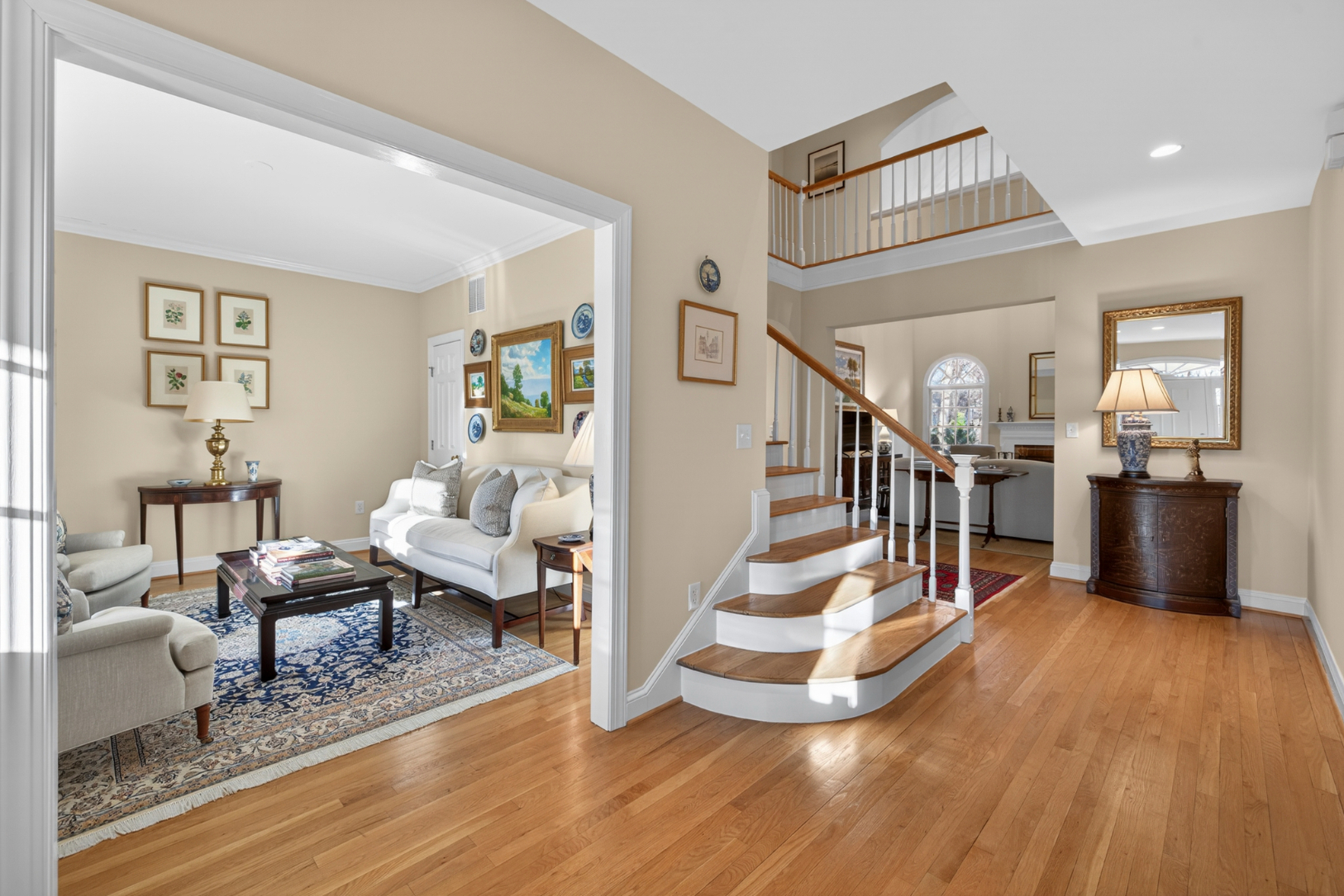 From the wide front porch, one enters the spacious and inviting foyer; it is here where one sees the wonderful openness of this mostly traditional floor plan. To the right is the formal dining room, to the left the elegant living room and straight ahead, the foyer opens into the dramatic family room with wood burning fireplace and vaulted ceiling. The ceiling height, updated statement lighting, as well as the tall windows flanking the fireplace, add to the ambiance. From the family room, pocket French doors open into the sun filled breakfast room and kitchen. Glass doors, in the breakfast room, lead out to the handsome stone terrace beautifully tying the home to its surrounding landscape. This terrace was recently added and is perfect for al fresco dining, relaxing, and entertaining. The breakfast room then leads to the back hallway with exterior entry, powder room, laundry room, and access to the three-car garage. Returning to the breakfast room one then enters the spacious chef's kitchen. Designed for creating beautiful meals and memories, this kitchen features an abundance of workspace with honed granite countertops, custom cabinetry, subzero refrigerator, a gas 5-burner cooktop, double ovens, 2 sinks and dishwasher drawers.A set of doors, between the kitchen and formal dining room, afford privacy from either room. Returning to the foyer, the front hallway leads to the exquisite Primary bedroom suite. This stunning bedroom features a tray ceiling, adding extra height, and new lighting. The elegant bath is spacious and features a double vanity, soaking tub, walk-in shower and private water closet. Adjacent to the bath is the custom designed walk-in closet. Returning to the front hallway, a graceful stairway leads to the second level, which features a second bedroom with private bath, and 2 additional bedrooms, which share a Jack and Jill bath. These bedrooms were recently carpeted with a neutral sisal, perfect for any decor. This level also has walk-in access to the attic storage room.The lower level features a spacious game room with built-in bookcases, a bonus room/office, full bath, and a large storage/mechanical room.The interior of this home was recently painted, and throughout this gracious home the owners have installed handsome and neutral, custom-made window treatments. This home is move-in ready and is equipped for Comcast cable and Xfinity Internet.For car enthusiast, Melmore's community roads are paved and come directly from Route 50; this home features a circular paved driveway which leads to the three-car attached garage. The location of this community provides easy access to Dulles International Airport and Washington, D.C.