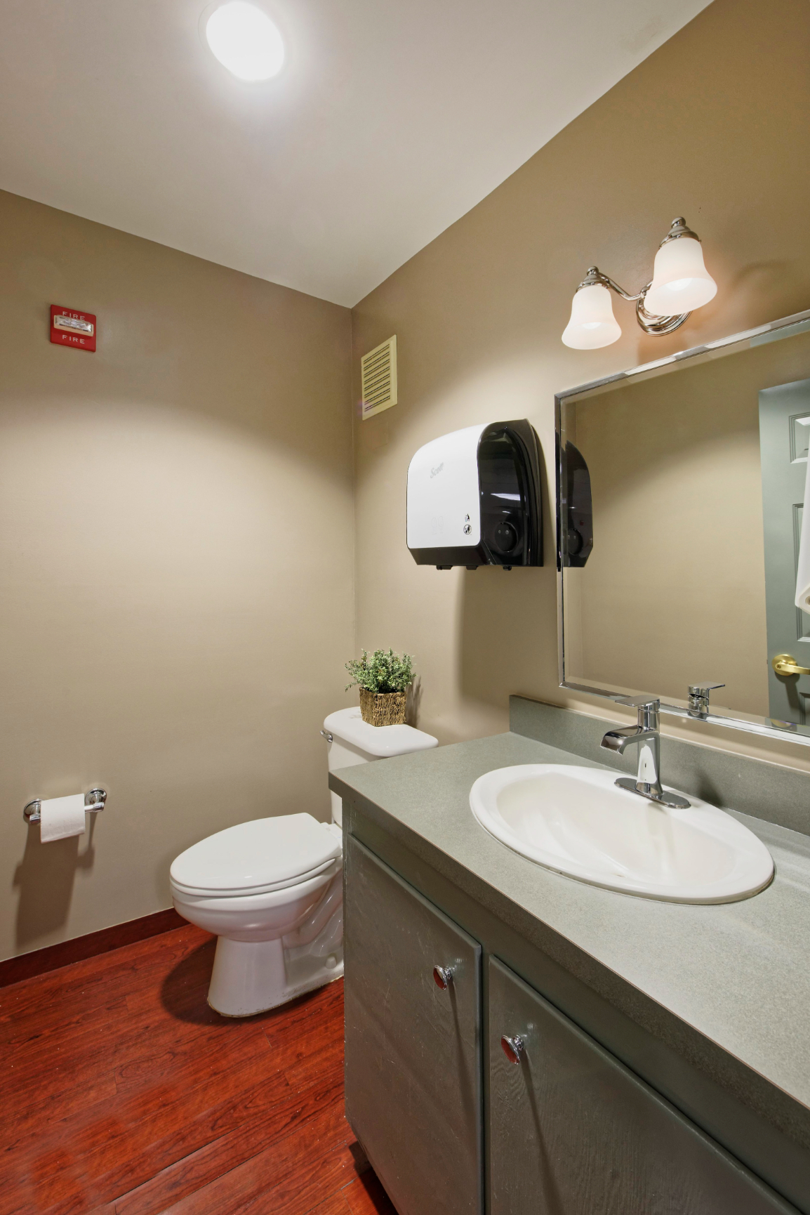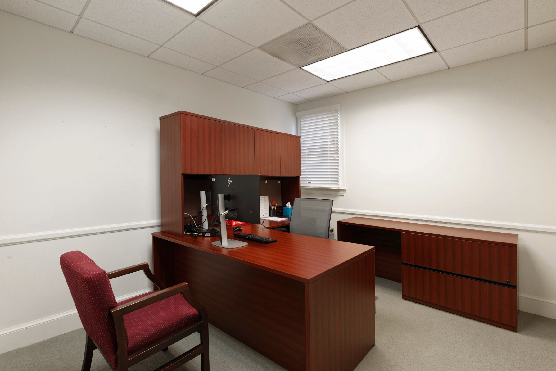 Two-story layout with front and rear entrances and staircases allows for multiple tenants or flexible use. Features include private offices, open work areas, conference rooms, three half baths, supply/copy room and large break room.  Two private parking spaces in front. Solid brick construction with standing-seam metal roof. Zoned C-2, permitting professional offices, service businesses, restaurant, retail, fitness studio, and more. Town water and sewer. Walk to restaurants, shops, grocery, and post office.