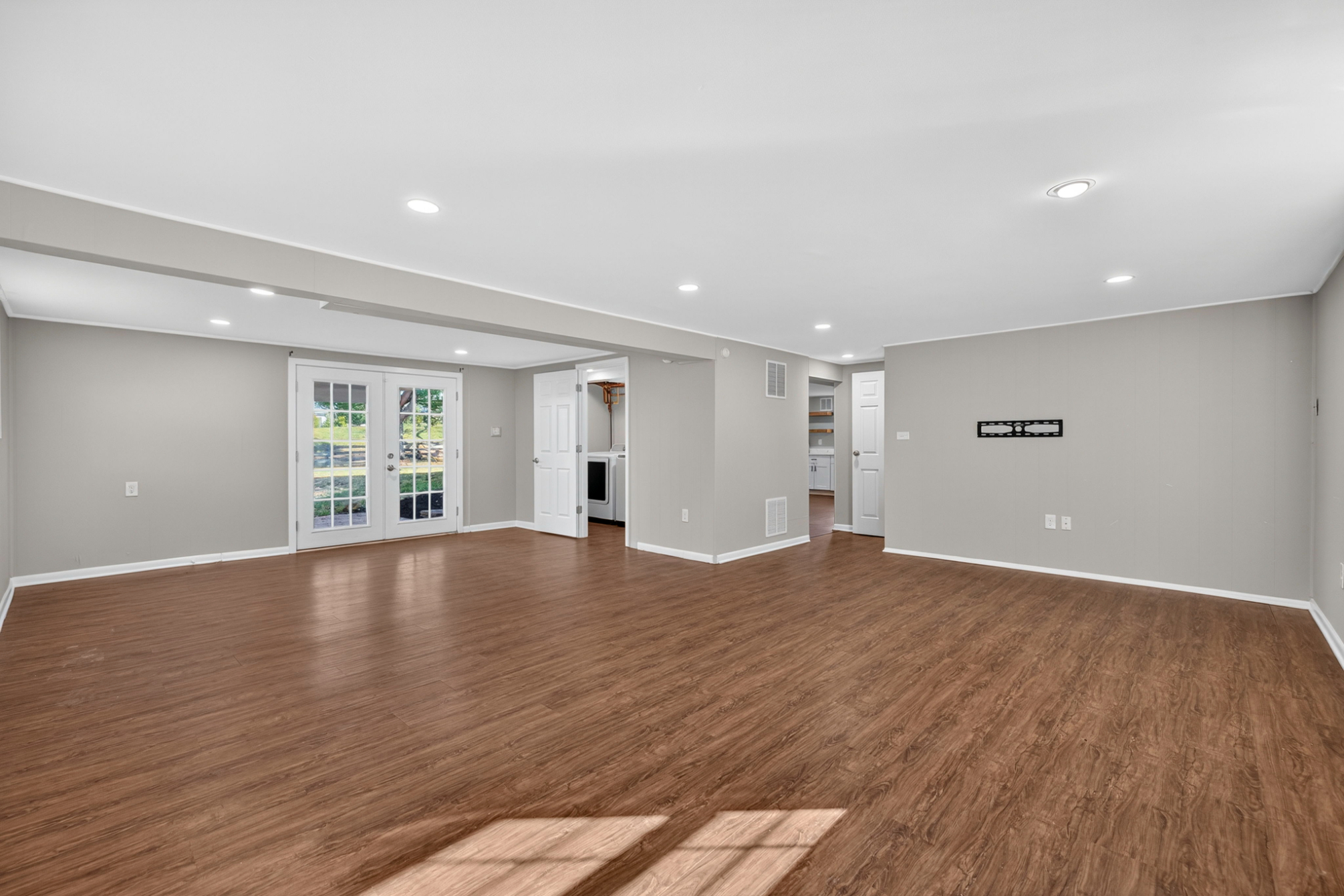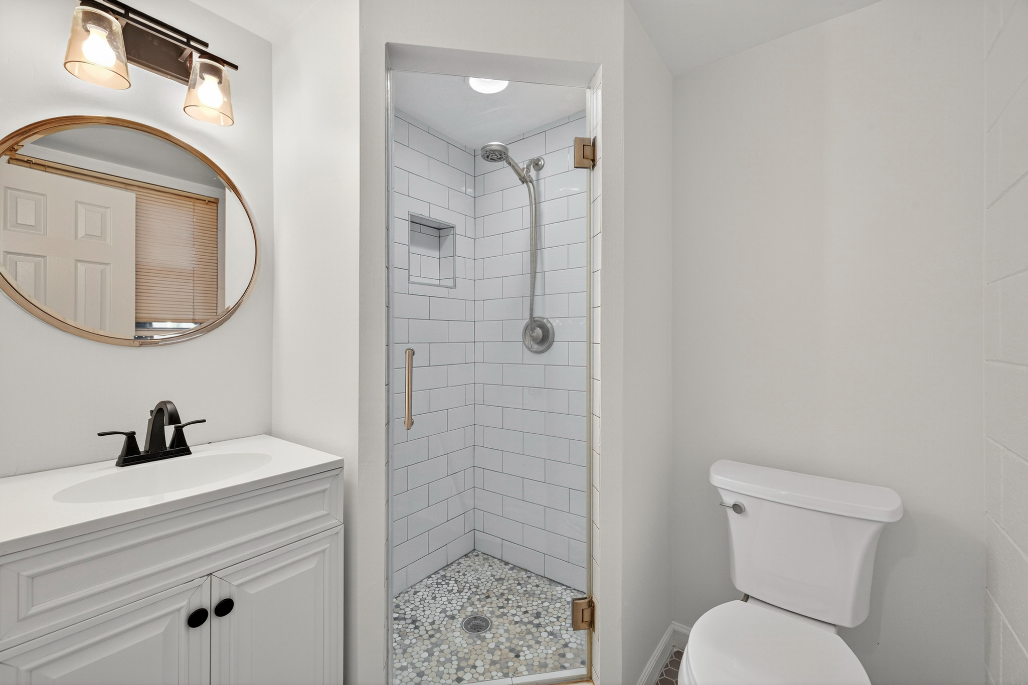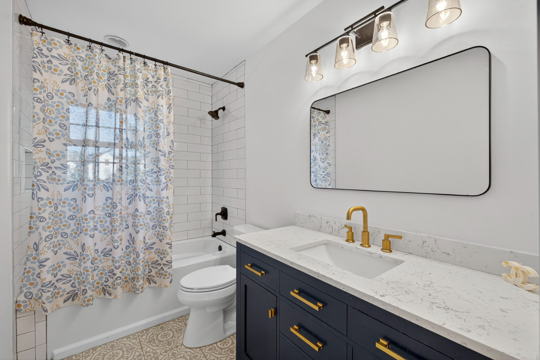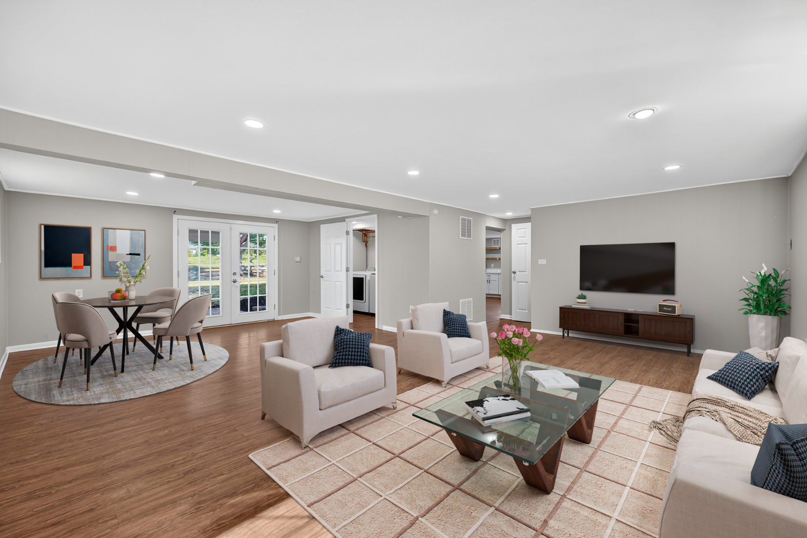 Renovated in 2021 the main level features a bright, open floorplan with beautiful hardwood floors and updated lighting throughout. The living room opens to the dining area and sunny kitchen with custom cabinets, stainless steel appliances, and quartz counters. Patio doors open onto a spacious, newly refurbished deck with stairs down to the backyard, perfect for entertaining friends and family. From the living area a hallway leads to the main bathroom, a cozy primary bedroom and two other bedrooms on this level.From the entrance foyer, stairs lead down to the fully finished lower level with laminate plank flooring and recessed lighting throughout. The flexible space offers a wet bar or efficiency kitchen, full bath, a fourth bedroom or office and utility room with washer and dryer. The spacious family room is filled with natural light and doors opening onto the covered patio and large fenced backyard.