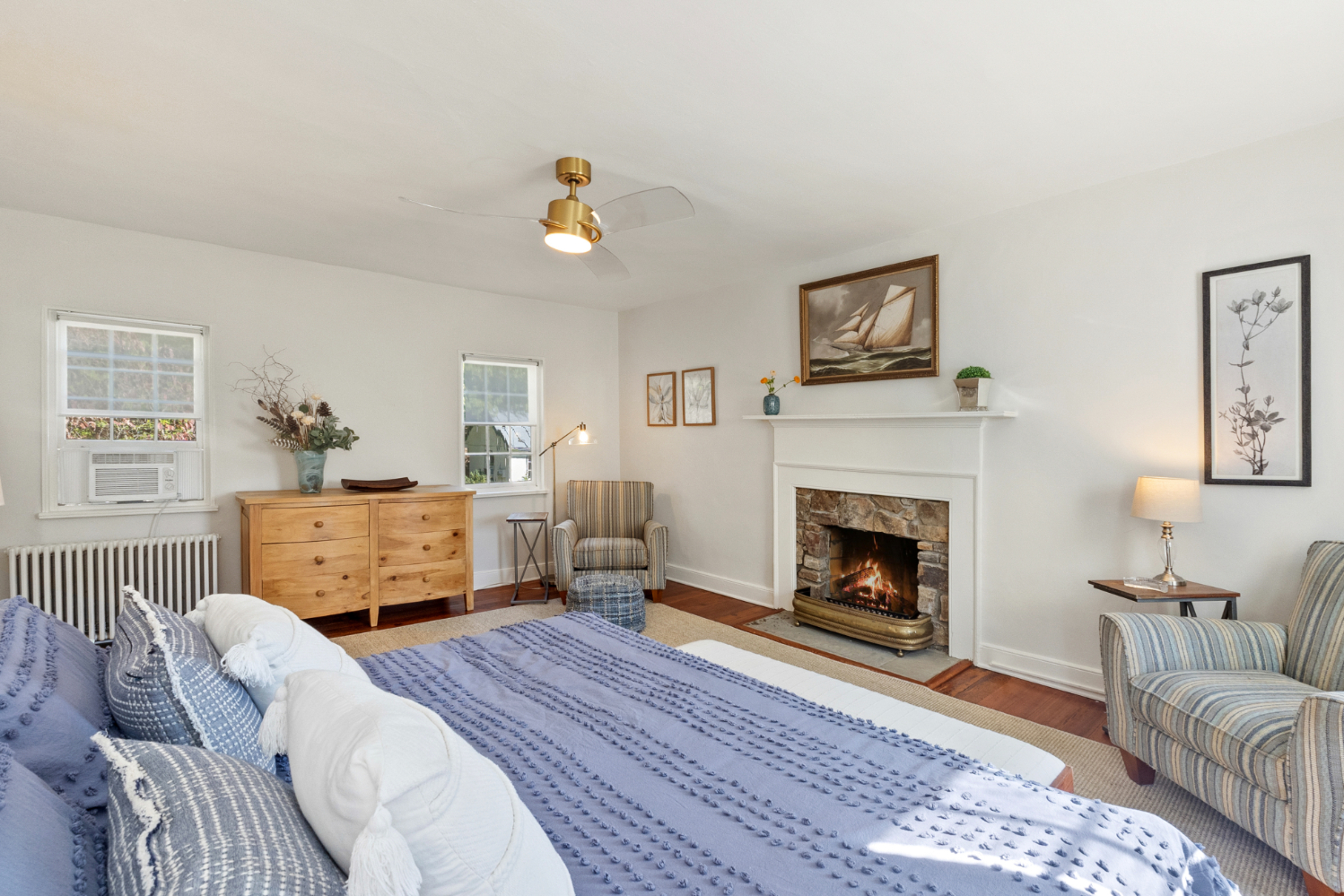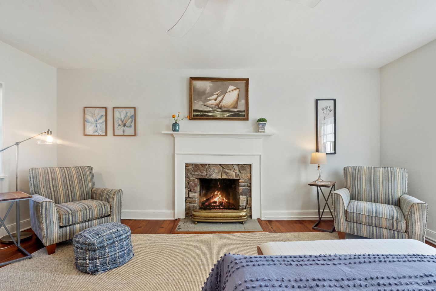 Inside, the home exudes warmth and character with gleaming antique hardwood floors throughout. Two inviting sitting rooms provide cozy spaces for relaxation or entertaining. The main level features a comfortable bedroom and updated full bath for easy one-level living, while upstairs awaits a spacious primary bedroom with its own updated bath. The bright, updated kitchen boasts contemporary appliances and opens seamlessly to a picturesque stone terrace overlooking lush, mature gardens--ideal for morning coffee or al fresco evenings. A large, interior-access storage basement offers ample room for gear or future expansion. Out back, a versatile separate one-room cottage (perfect as a home office, artist's studio, guest suite, or teen retreat) adds incredible flexibility.