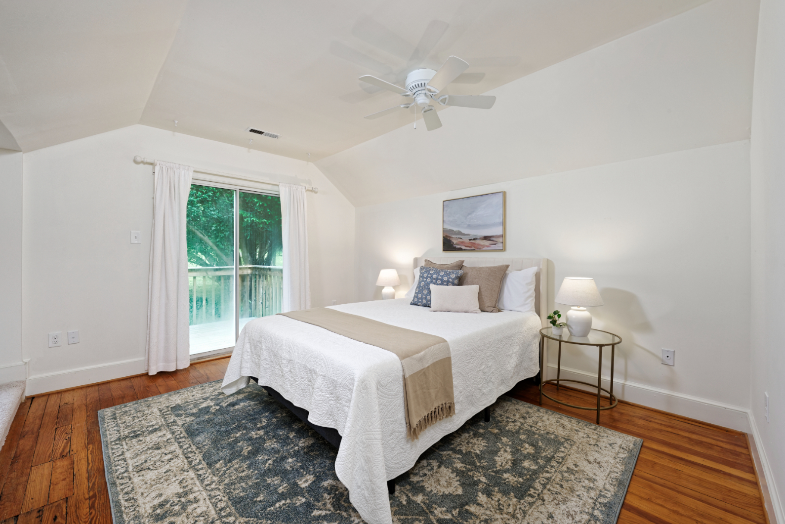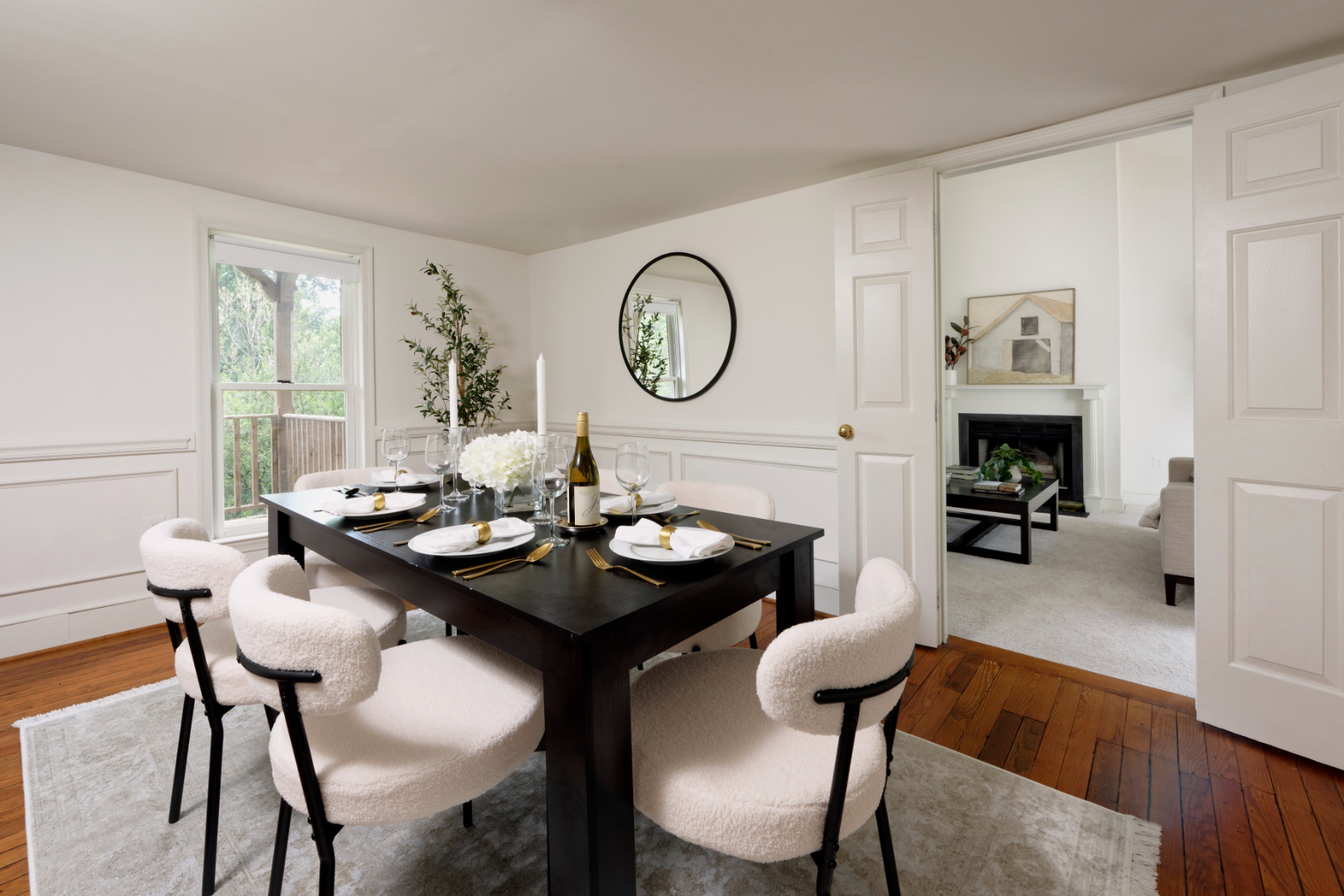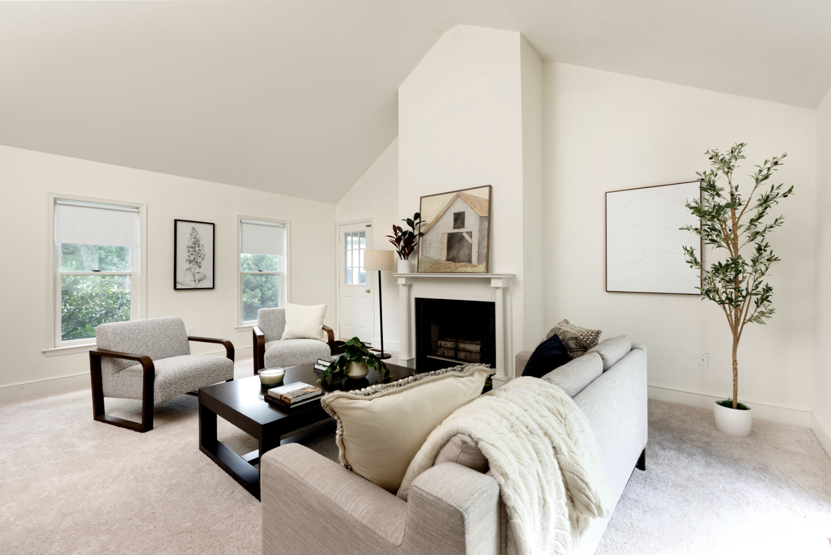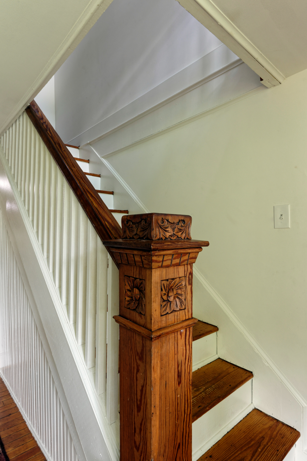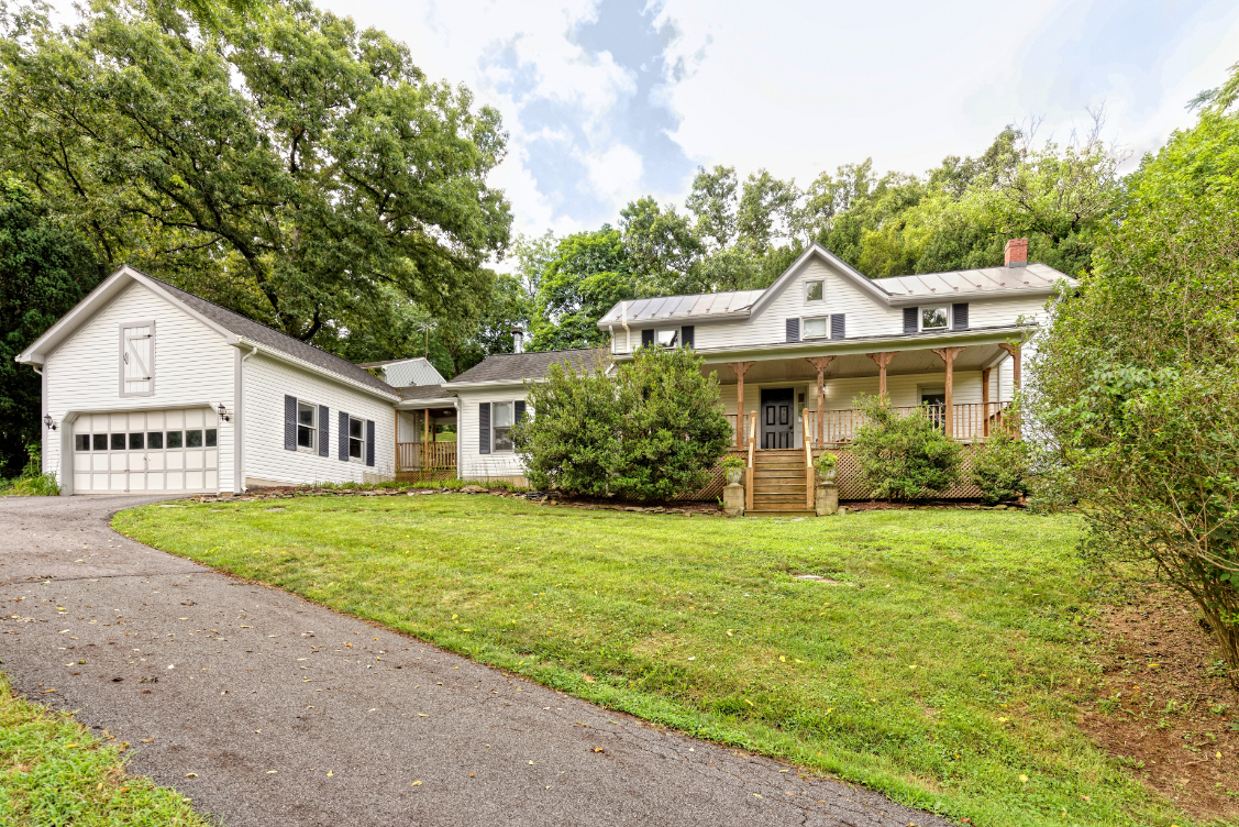 Welcome to your new home in Round Hill--a charming blend of historic character and modern comfort. Originally built in the 1900s, this inviting farmhouse welcomes you with a traditional wide front porch perfect for gathering with friends or sipping your morning coffee. Step through the front door into the classic center hall foyer where a beautifully carved wood newel post sets the tone for the home's timeless details. To the left, the formal dining room features original hardwood floors and chair railing - while to the right the formal living room offers fresh new carpet and great natural light. At the rear of the home, the kitchen opens to a generous breakfast room--ideal for casual meals or entertaining. The kitchen includes a peninsula with seating for three, unique greenhouse window over the double sink, plus access to a private stone patio for al fresco dining. The heart of the home is the two-story, light-filled family room with a wood-burning fireplace, creating a cozy space to gather year-round. From here, step out to a second stone patio or take the covered walkway to the detached two-car garage. A powder room off the foyer completes the main level. Upstairs, the spacious primary suite includes a private sitting area, walk-in closet, full bath, and its own balcony--an ideal retreat. Two additional bedrooms, both with original hardwood floors share a full hall bath.