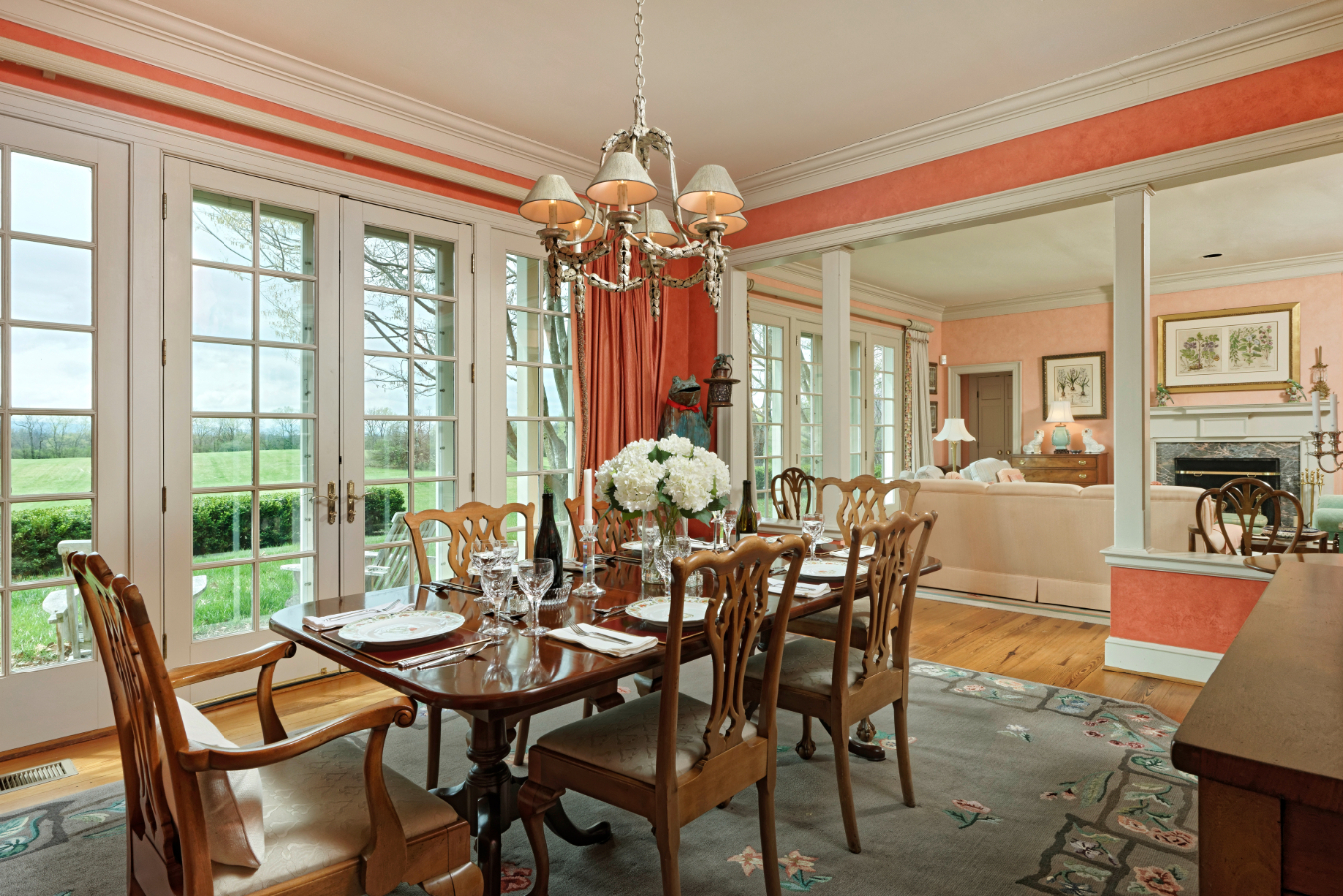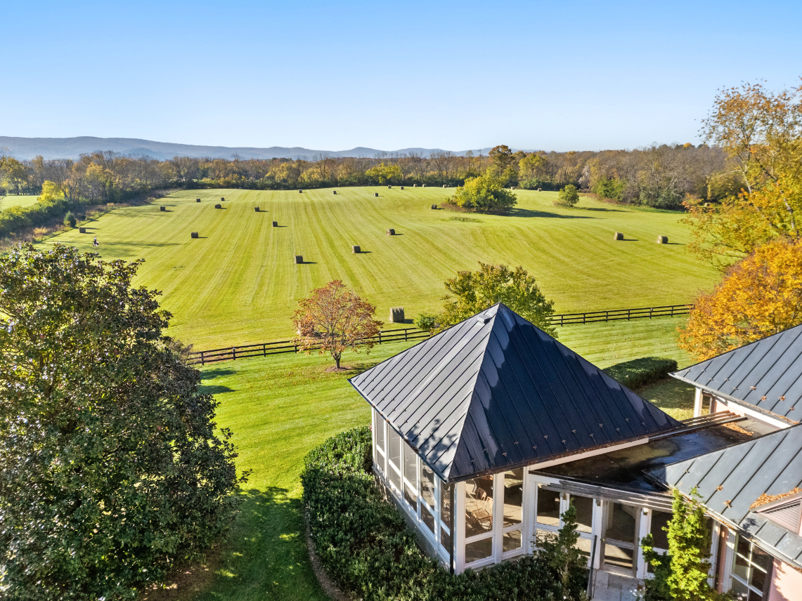 Salterhill sits atop a knoll in the heart of 145 acres, offering sweeping views of the Blue Ridge Mountains. Designed by Charlottesville architect Jay Dalgliesh and built in 1989 the 7,000+ sq ft home features 6 bedrooms, 5 full baths and 2 half baths. The farm spans two parcels beautifully blending open hay fields and mature hardwood forest. Surrounded by large farms protected by conservation easements, Salterhill remains unencumbered and offers tax credit potential as well as having four additional dwelling unit rights. A winding drive through the woods and over two cattle guards lead to a pea gravel courtyard framed by trees and mature landscaping. A flagstone path welcomes guests to the mahogany double doors. Inside, a curved front hall with Zuber French woodblock scenic wallpaper panels opens to the light-filled living room, where a fireplace and a wall of windows showcase the southern views. The formal dining room, with chair rail and intricate moldings, flows seamlessly from here. The gourmet kitchen, remodeled in 2021, features a tray ceiling, large island, and an adjoining family room that is anchored by a floor to ceiling Albemarle greenstone fireplace. Off the kitchen hallway are a wet bar, gardening nook with antique soapstone sink, and powder room. In the back hallway, which connects to a two-car garage, are large pantry closets. A four-season room with interchangeable screens and glass panels offers year-round enjoyment of the views. The main level also includes a pine paneled library with fireplace and passage to the primary suite. The luxury primary suite has built-ins, large bath with dual vanities, dressing table and separate walk-in closets. There are two more-bedroom suites, laundry room and powder room. Upstairs a guest suite with full bath and walk-in closet is joined by attic storage. The walk-out lower level offers two more bedrooms with a Jack & Jill bath, a spacious recreation room, full kitchen, and private entrance--ideal for guests or an in-law suite. The original landscape plan was done by the renowned landscape architect, the late Meade Palmer. More recent changes and additions have been made by Nicole Seiss of LanDesign. Nature lovers will appreciate the magnolia, sycamore, pin oak, beech, red maple, weeping willow, and horse chestnut trees, as well as two large perennial beds. The Hartley Botanic greenhouse from England, tiered vegetable beds and 3 acre quail habitat enhance the property's charm. Perfectly located - within the historic Blue Ridge Hunt territory, 10 minutes to the Virginia State Arboretum and Shenandoah River, 20 minutes to Sky Meadows State Park, 50 minutes to Dulles International Airport and 90 minutes to Washington, D.C. - Salterhill offers privacy, beauty, and turn-key readiness